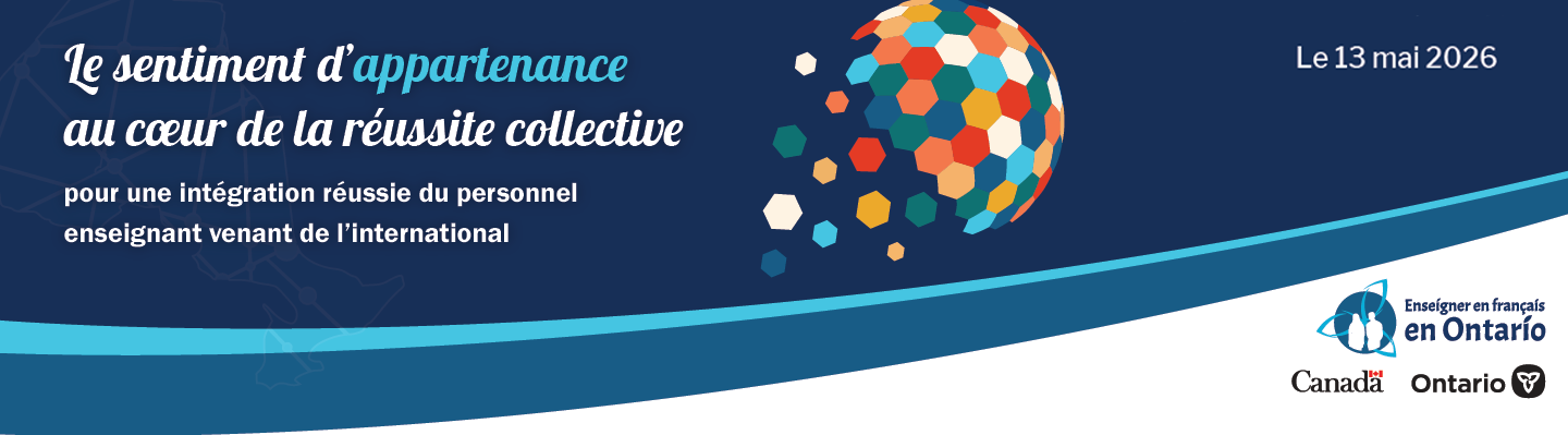 Avec la participation d’Immigration, Réfugiés et Citoyenneté Canada et de l’Ordre des enseignantes et des enseignants de l’Ontario, cette journée abordera des thématiques clés liées au sentiment d’appartenance du personnel enseignant venant de l’international. Des témoignages d’enseignantes et d’enseignants, d’élèves ainsi que de directrices d’école et de directeurs d’école seront présentés. Un échange de pratiques réussies ainsi qu’un atelier encourageant une réflexion sur les dimensions liées à l’intégration des enseignantes et des enseignants venant de l’international feront également partie du programme de la journée.