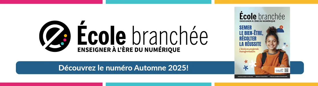 La revue École branchée, diffusée depuis 27 ans, est un média professionnel traitant de l’enseignement à l’ère numérique. Elle est offerte gratuitement par le Centre franco au personnel enseignant des écoles de langue française de l’Ontario.