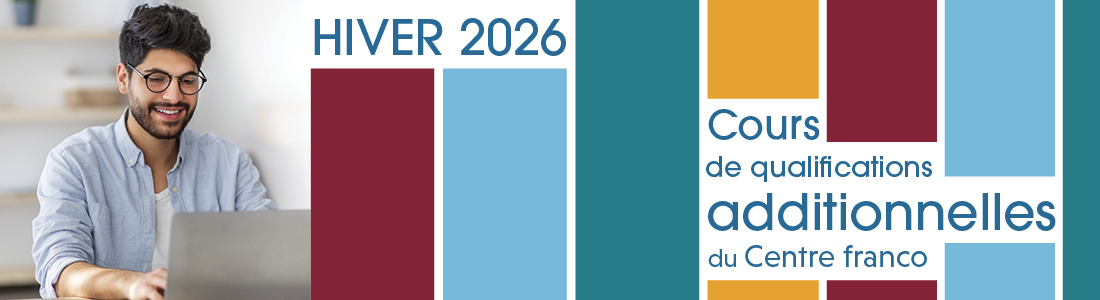 La programmation hiver-printemps 2026 du Centre franco est maintenant disponible! Choisissez parmi 12 cours menant à une qualification additionnelle, offerts entre la mi-janvier et la fin de février 2026.
